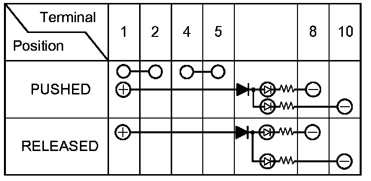 4. Check for continuity between the terminals in each switch position according to the table.