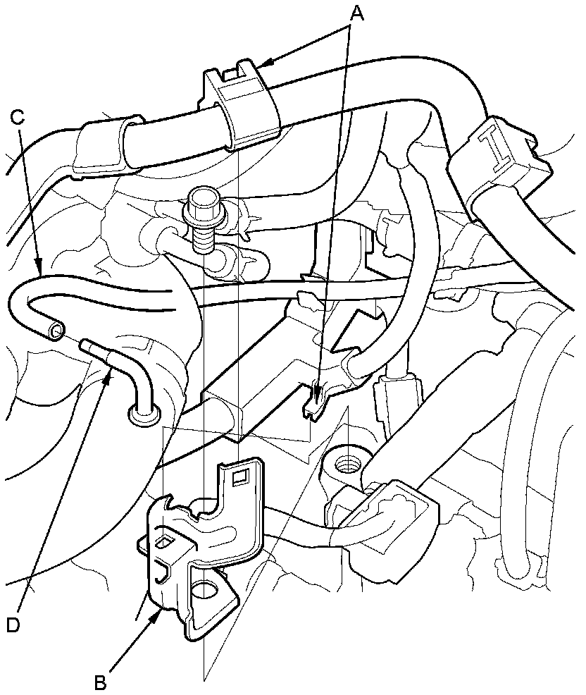 22. Remove the transmission breather hose (C) from the breather pipe (D).