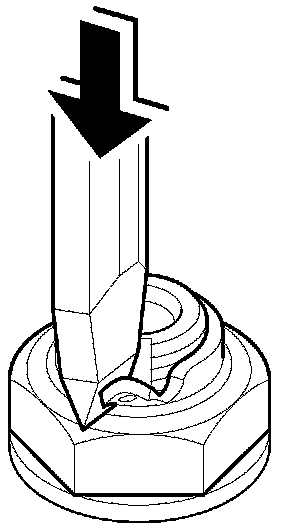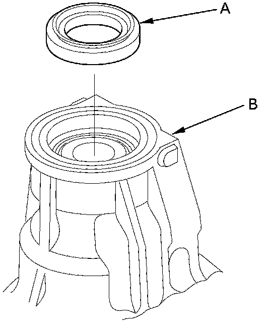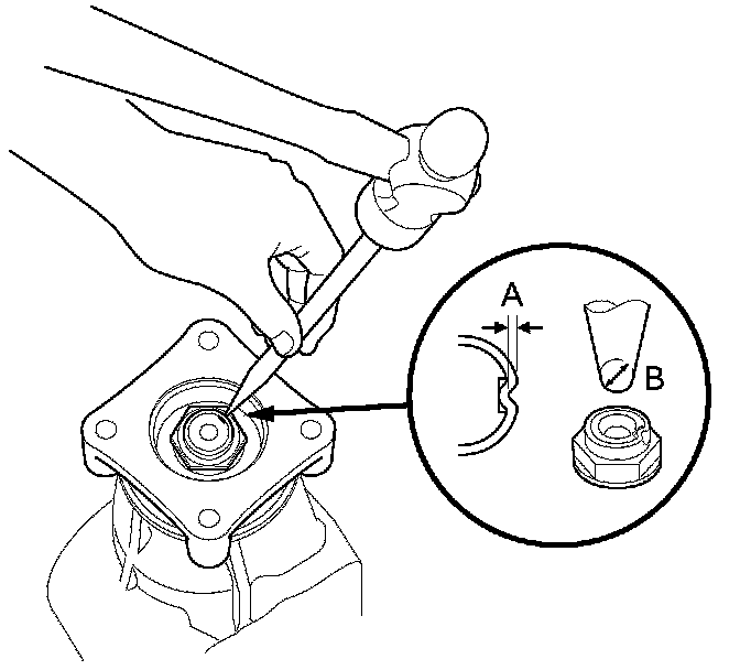 21. Stake the locknut to a depth (A) at least 0.7 mm (0.028 in) using a 3.5 mm punch (B). Be careful not to make a crack on the locknut when staking.