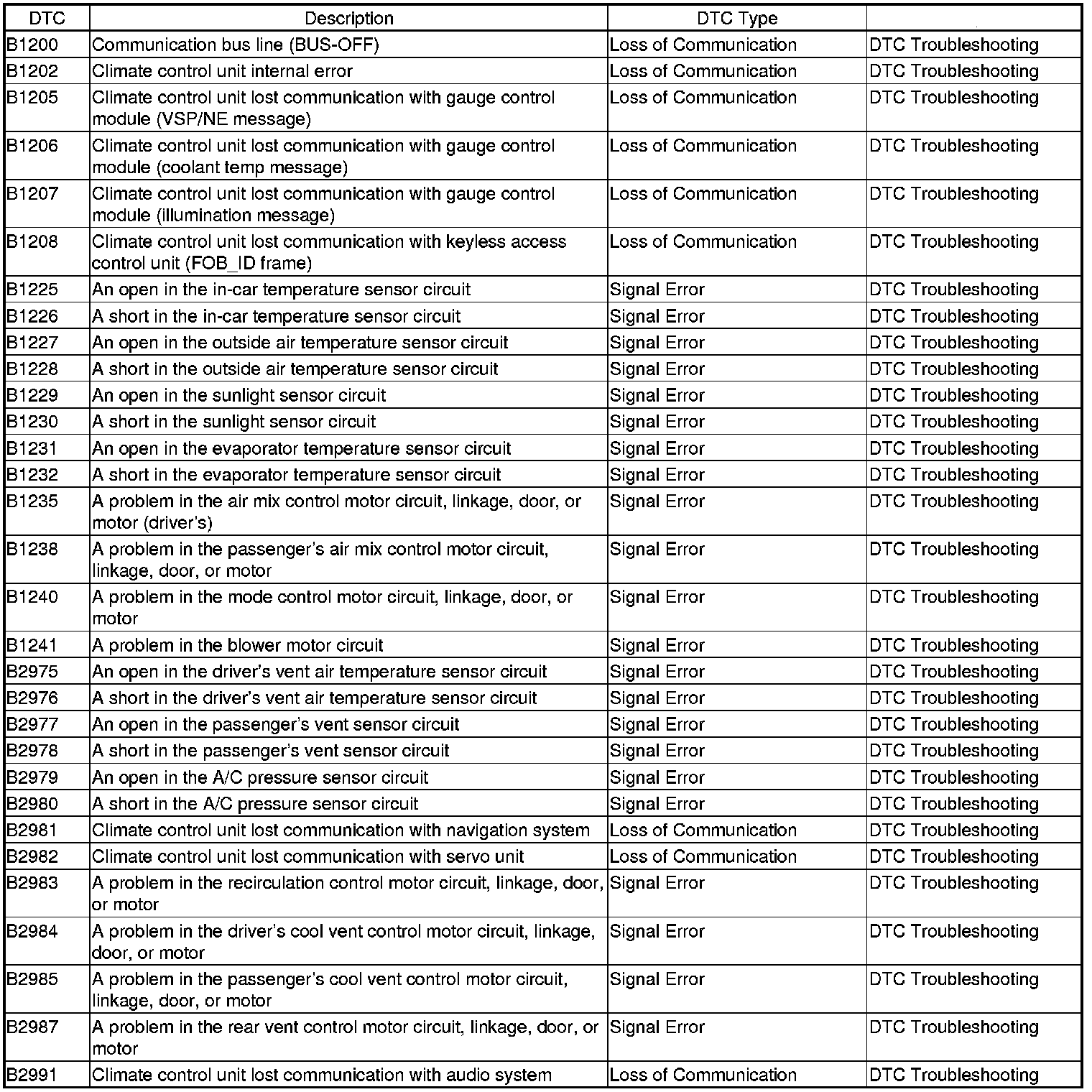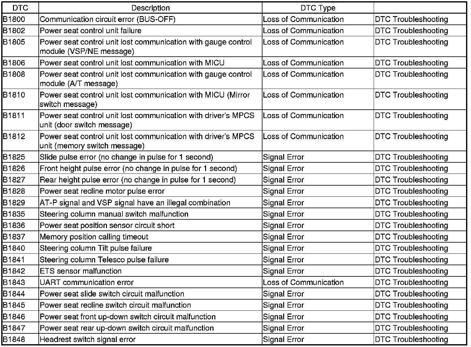 - Signal error DTCs