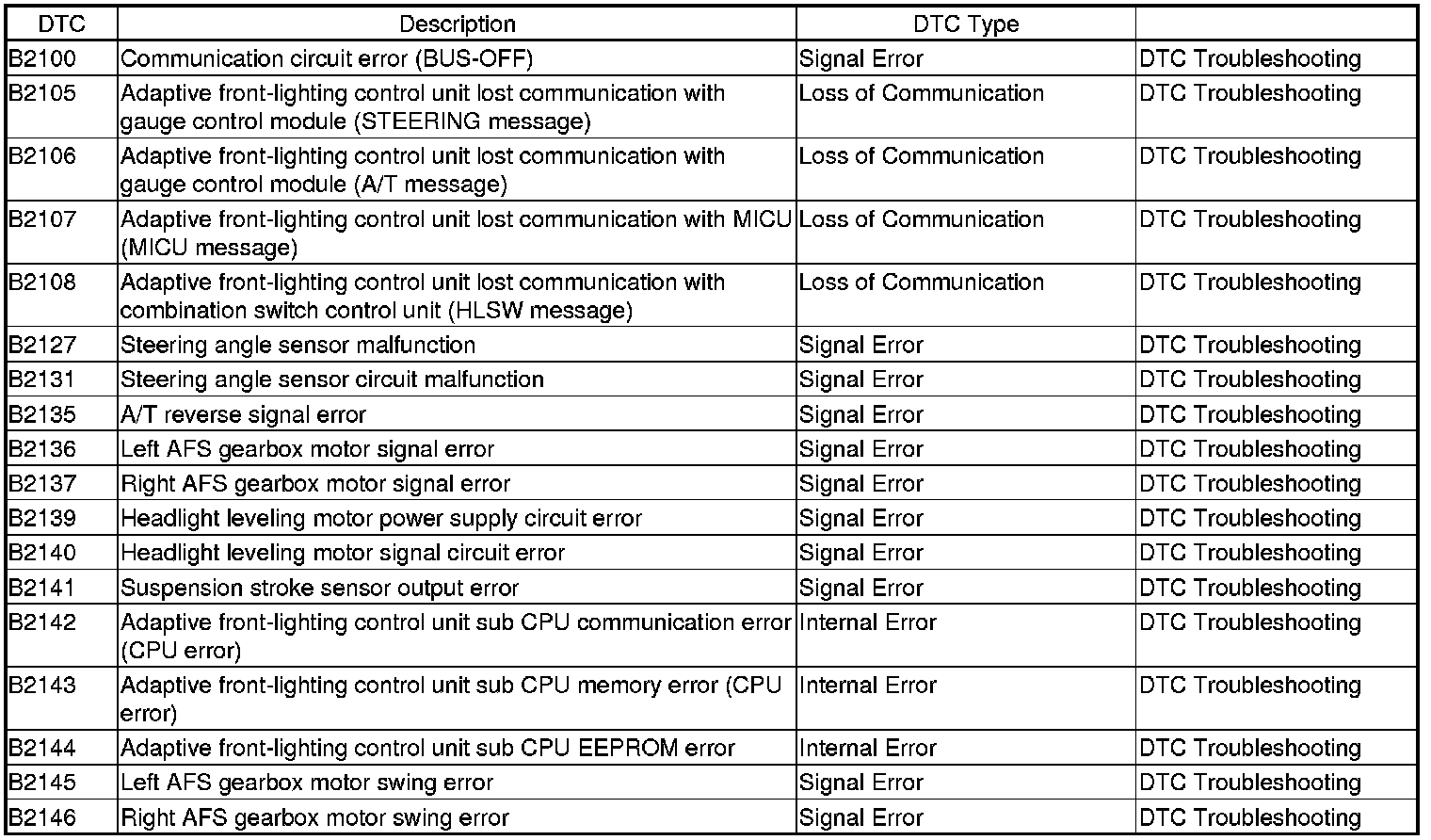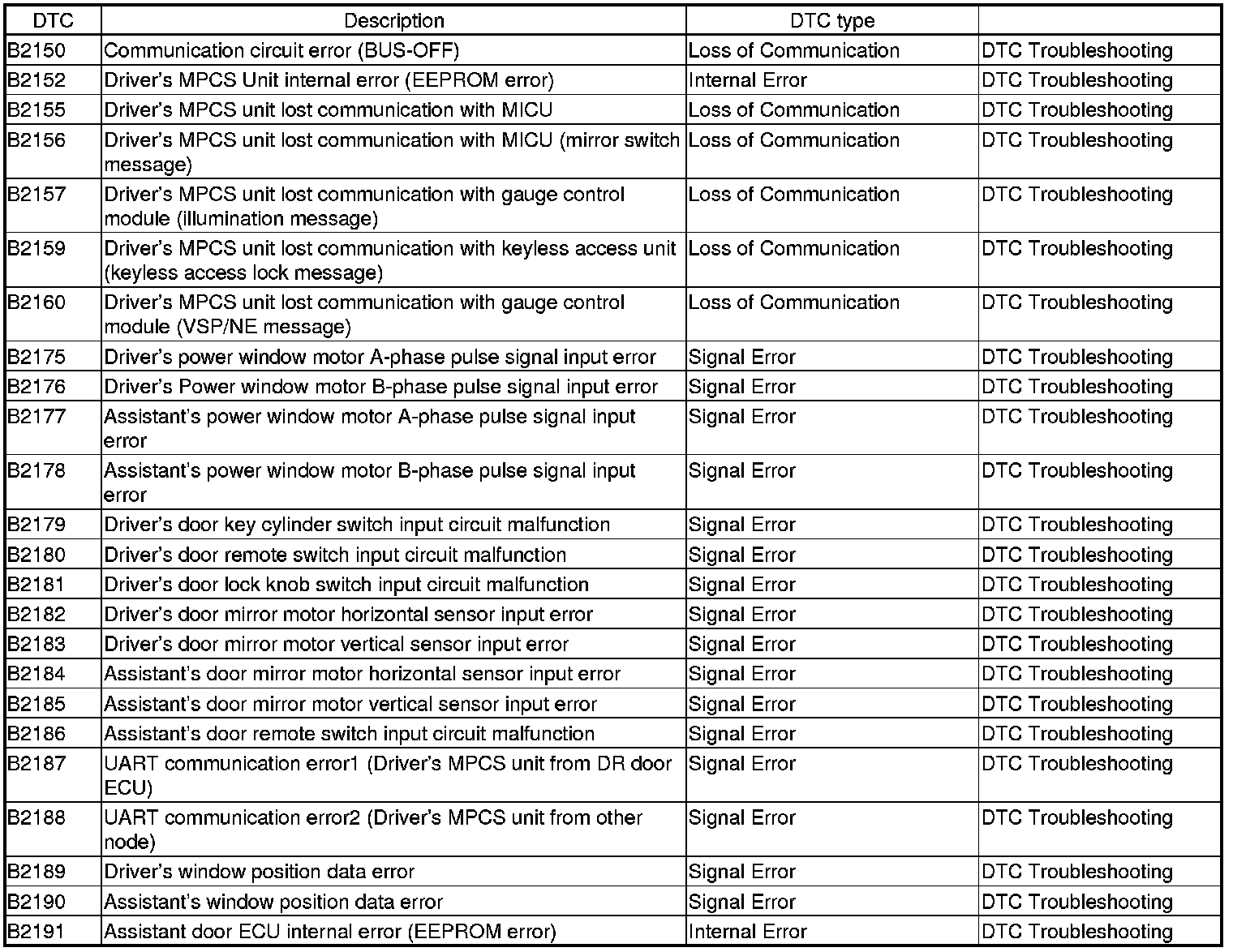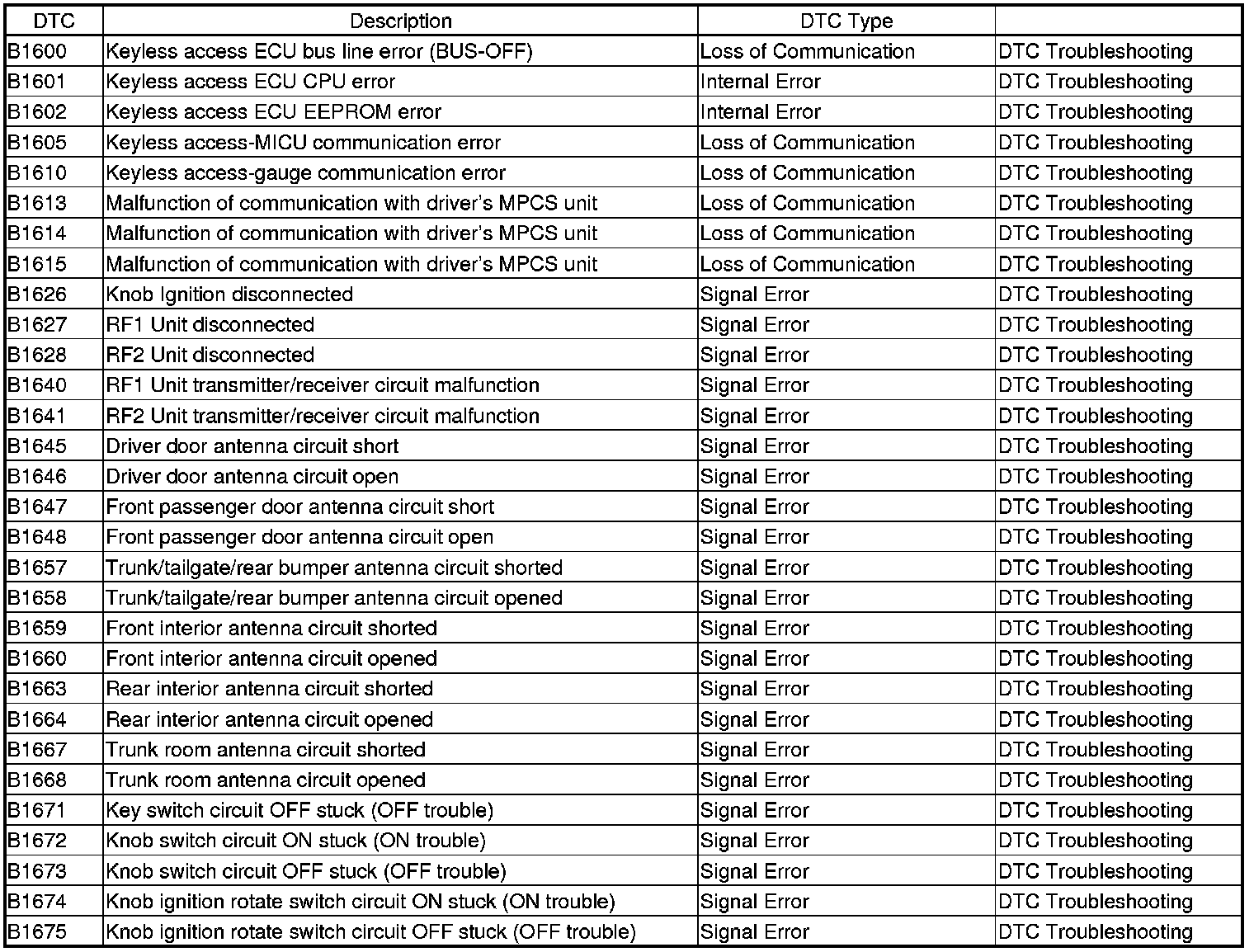 - Internal error DTCs