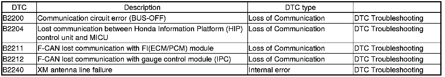 - Loss of communication DTCs (beginning with the lowest number first; for example, if DTC B1005 and B1008 are retrieved, troubleshoot B1008 first).