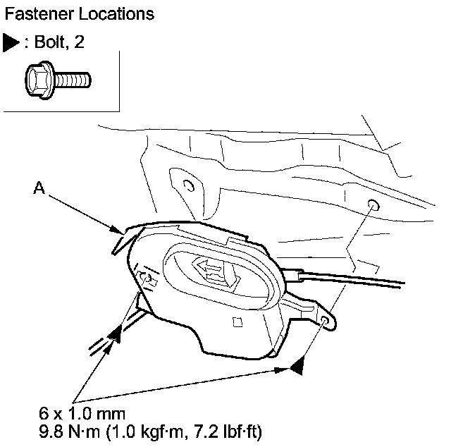2. Remove the bolts, then remove the trunk inside lever (A) from the body.