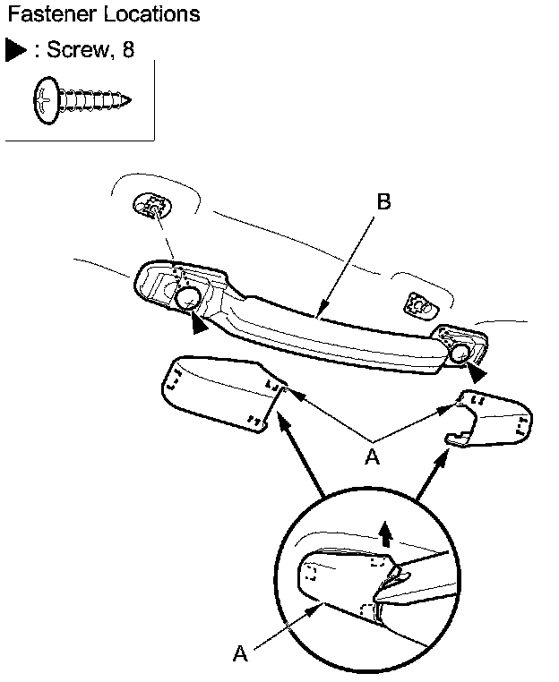9. If necessary, remove the clips (A) from the grab handle brackets (B).
