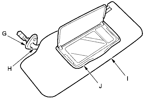 - Any bends or cracks in the sunvisor stay shaft (H)