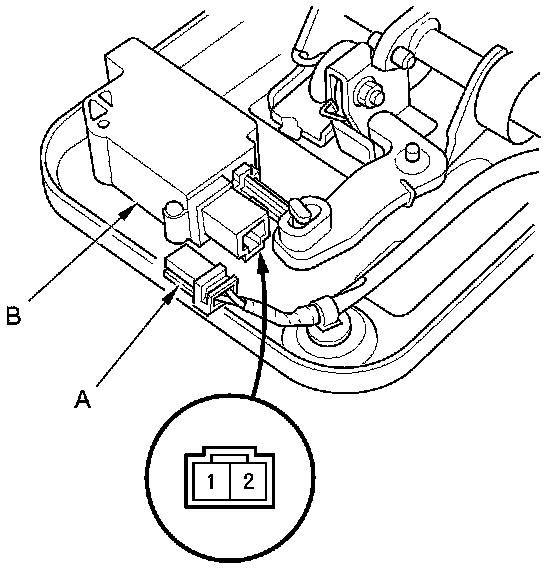 2. Disconnect the 2P connector (A) from the headrest actuator (B).