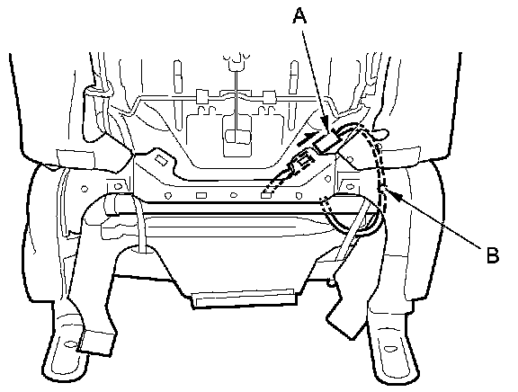 6. Driver's seat: Disconnect the seat-back heater connector (A), and detach the harness clip (B).