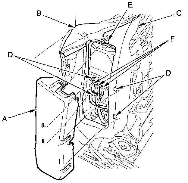 10. Passenger's seat: Disconnect the OPDS sensor connectors (F).