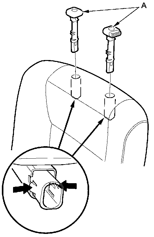 12. Pull out the head restraint guides (A) while pinching the tabs on the end of the guides, and remove them.
