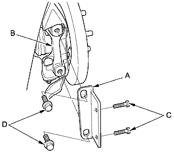 NOTE: Place two bolts (C) in the brackets before tightening the bolts (D).