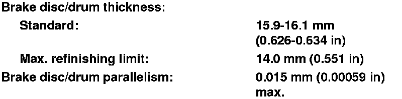 - If the brake disc/drum is replaced with a new one, check the new disc/drum for runout. If the new disc/drum is out of specification, refinish the disc/drum.