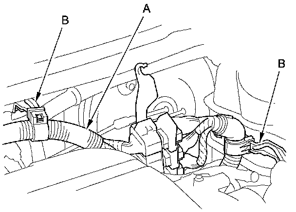 3. Remove the engine wire harness (A) from the harness brackets (B), and move the engine wire harness aside.