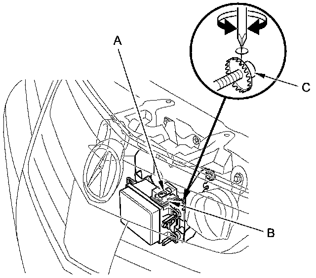 3. Turn the vertical adjusting bolt (C) on the driver's side with a screwdriver, and adjust the angle of millimeter wave radar so that the air bubble in the level is centered.