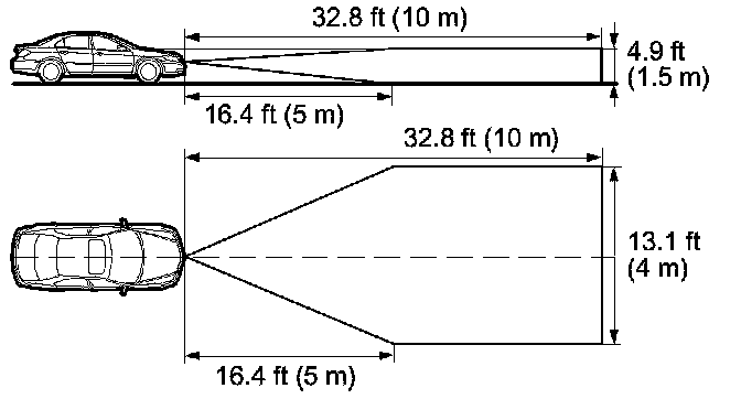 - Park the vehicle on level ground in a wide open space to avoid misadjusting caused by reflecting objects. The space needs to be 32.8 ft (10 m) in front, 13.1 ft (4 m) in width and 4.9 ft (1.5 m) in height.
