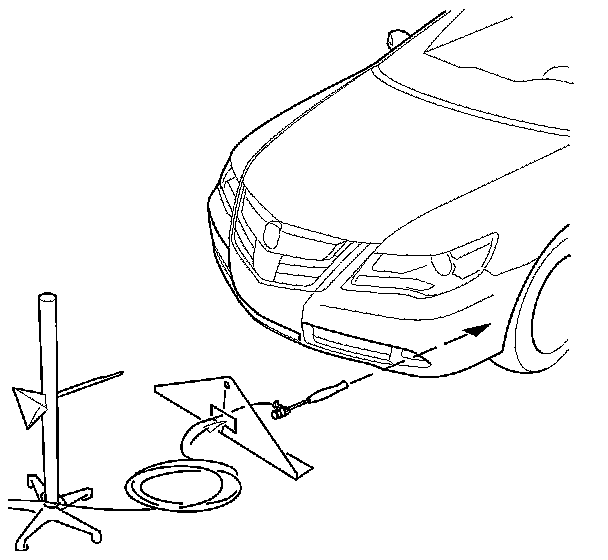 10. With the target and the height rod aligned with the cord, move the target out in front of the vehicle until the cord is fully extended (16.5 ft, 5 m). Position the cord at the centerline of the centering stand.