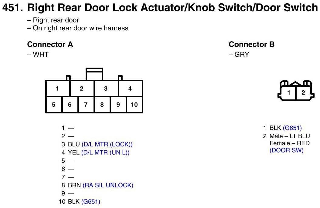 View 451 - Right Rear Door Lock Actuator/Knob Switch/Door Switch Connector View