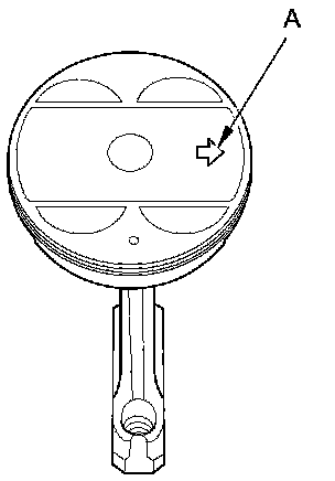 13. Position the piston/connecting rod assembly with the arrow (A) facing the timing belt side of the engine block.