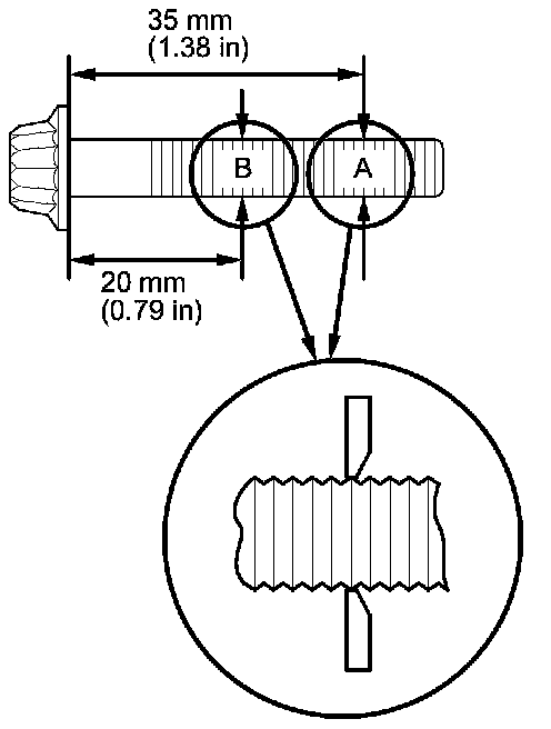 16. Measure the diameter of each connecting rod bolt at point A and point B.