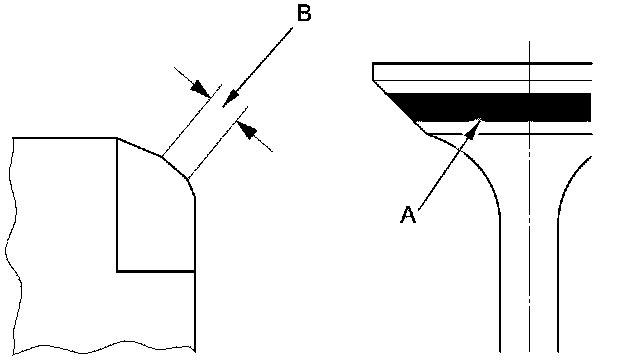 7. The actual valve seating surface (B), as shown by the blue compound, should be centered on the seat: