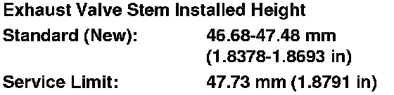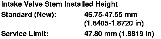 9. If the valve stem installed height is over the service limit, replace the valve and recheck. If it is still over the service limit, replace the cylinder head; the valve seat in the head is too deep.