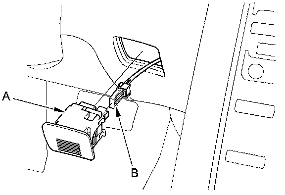 1. Remove the in-car temperature sensor (A) from the driver's dashboard lower cover, then disconnect the 4P connector (B).