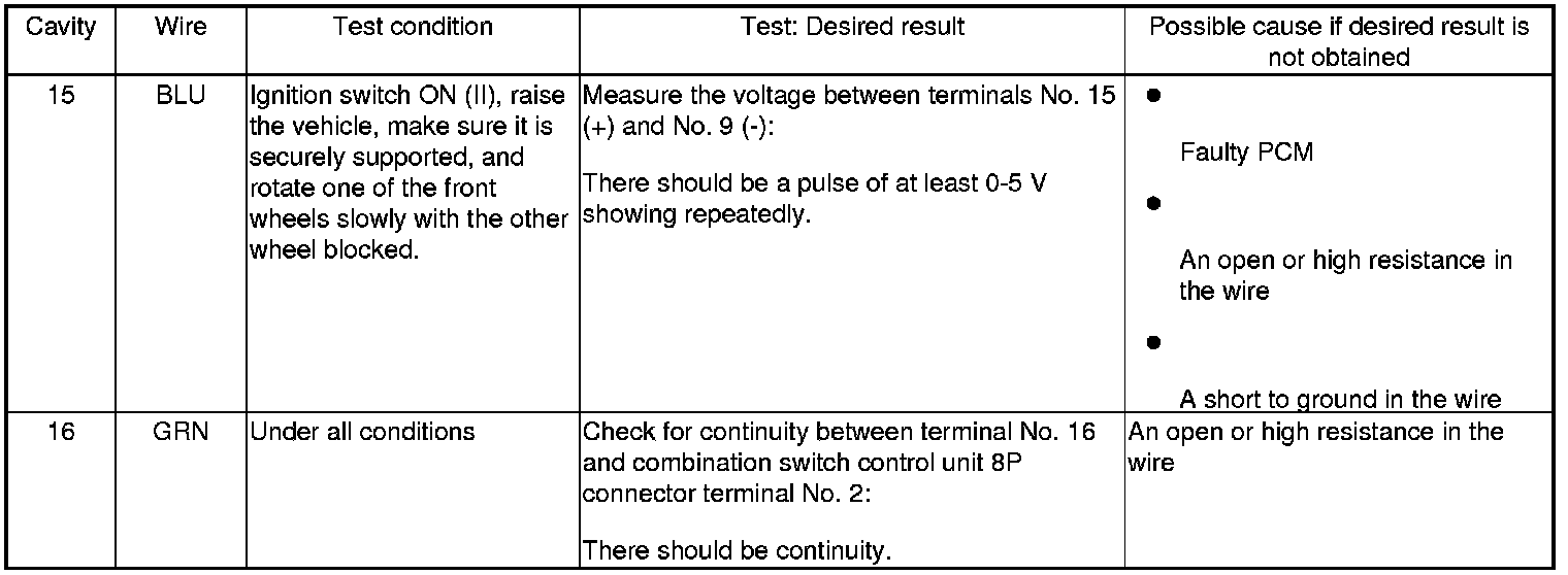 6. Reconnect the connector to the control unit, and do the following input tests.