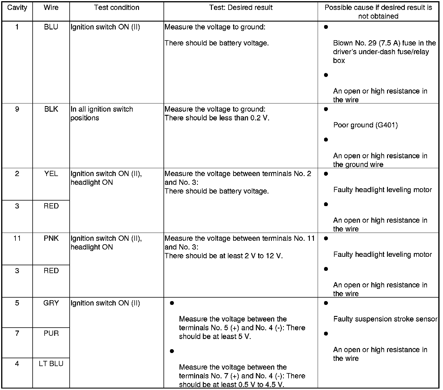 - If all the input tests prove OK, replace the headlight leveling control unit.