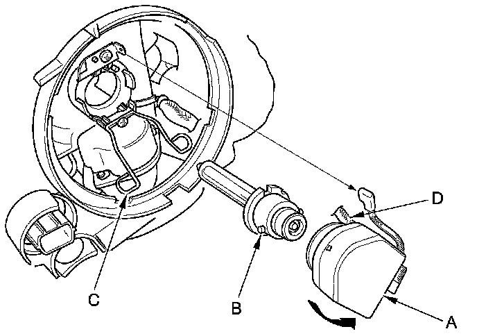 6. Pull the retaining spring (C) away from the bulb, then remove the bulb.