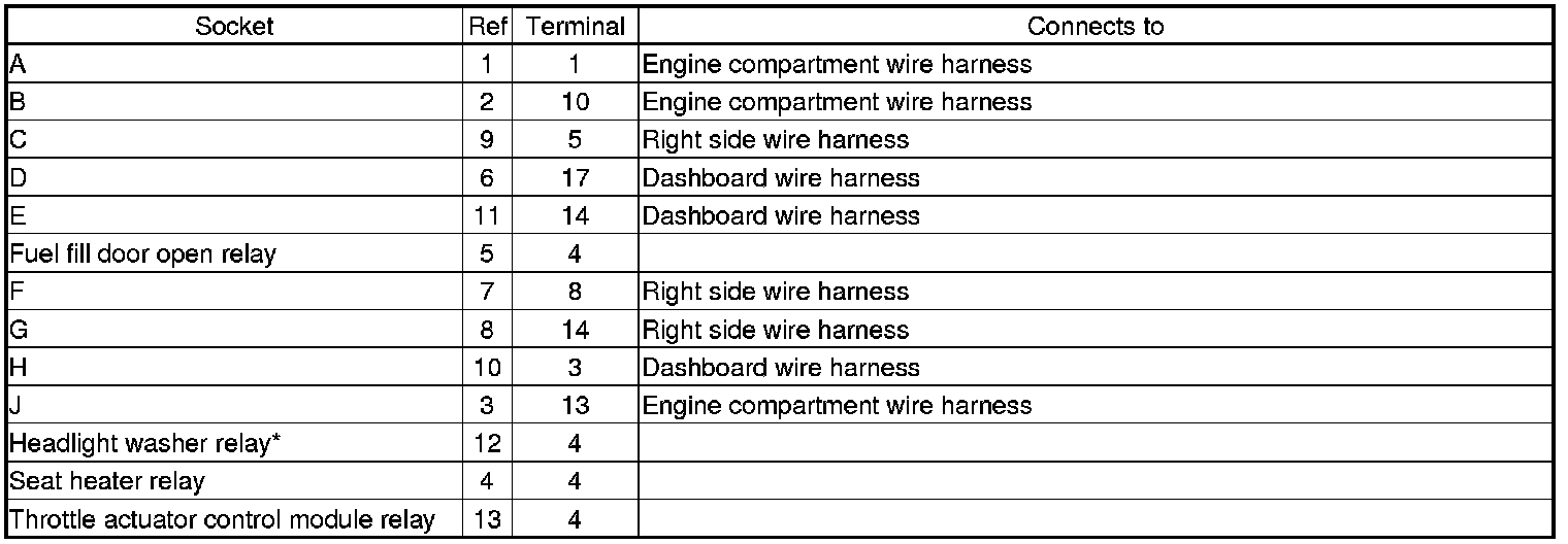 Fuse/Relay Box Connector Locations