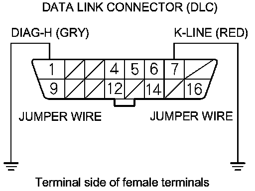 23. Connect DLC terminals No. 1 and No. 7 to body ground with jumper wires.