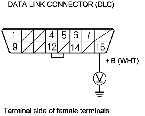 28. Measure the voltage between DLC terminal No. 16 and body ground.