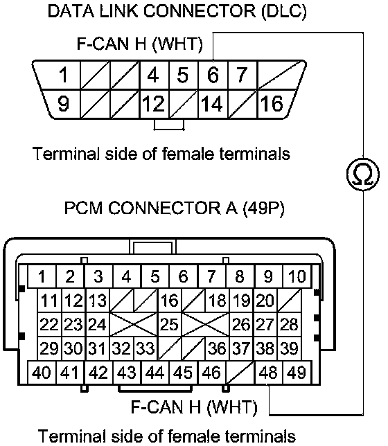 Repair an open in the wire between the PCM (A48) and DLC terminal No. 6.�
