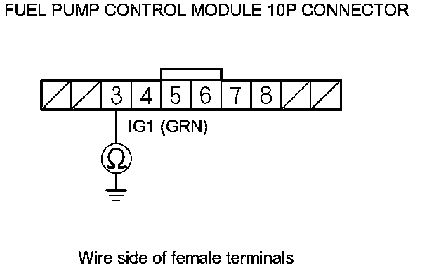 59. Check for continuity between fuel pump control module 10P connector terminal No. 3 and body ground.