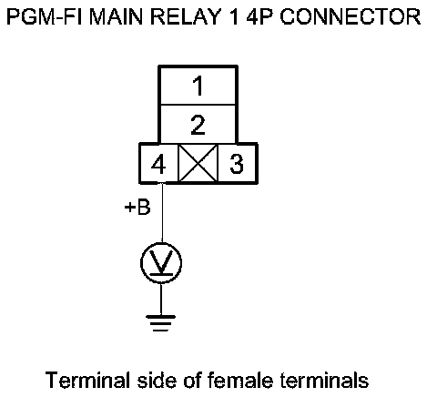67. Measure the voltage between PGM-FI main relay 1 4P connector terminal No. 4 and body ground.