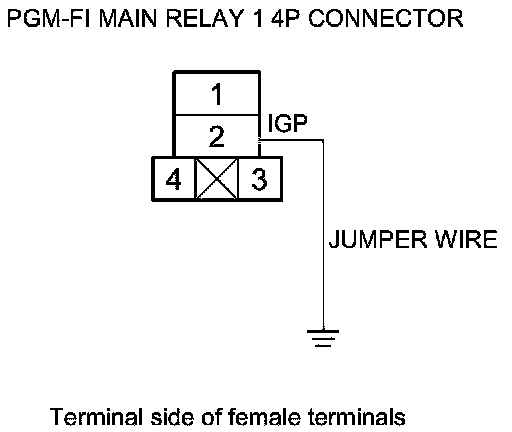 73. Connect PGM-FI main relay 1 4P connector terminal No. 2 to body ground with a jumper wire.