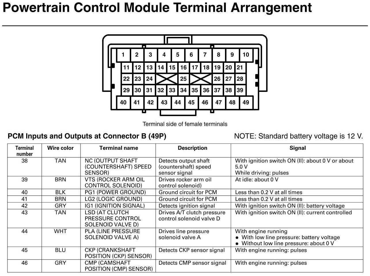 PCM Inputs And Outputs At Connector B