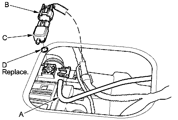 5. Install the parts in the reverse order of removal with a new O-ring (D).