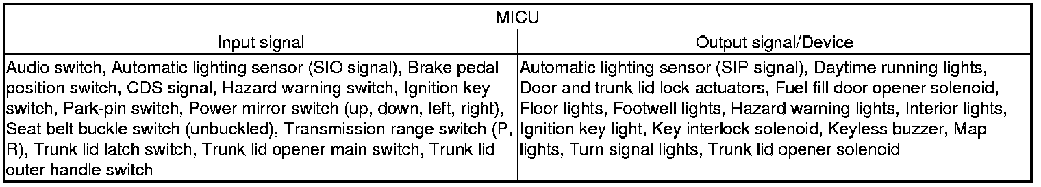 - The MICU, relay control module, gauge control module, and keyless access control unit receive the door lock switch message.