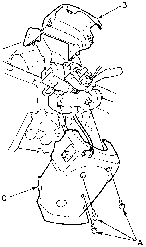 7. Remove the column cover screws (A), then remove the column covers (B, C).