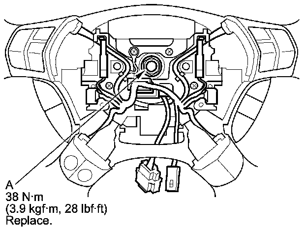 8. Install and torque a new steering wheel nut (A), then reconnect the 20P connector.