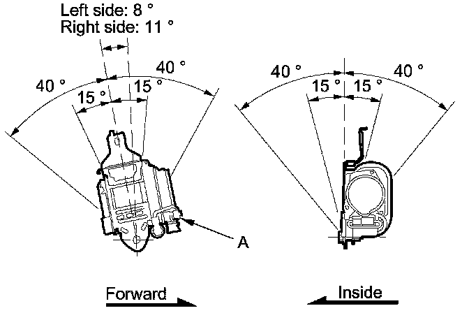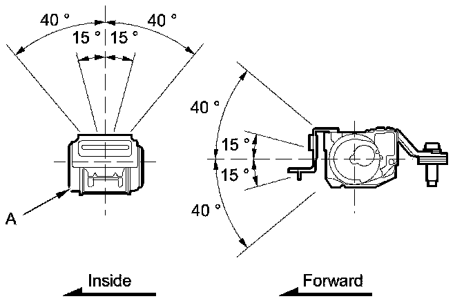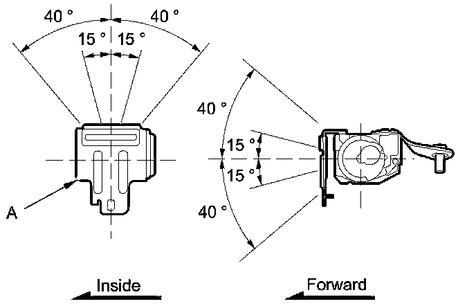 2. Make sure that the seat belt does not lock when the retractor (A) is leaned slowly up to 15 ° from the mounted position. The seat belt should lock when the retractor is leaned over 40 °. Do not attempt to disassemble the retractor.