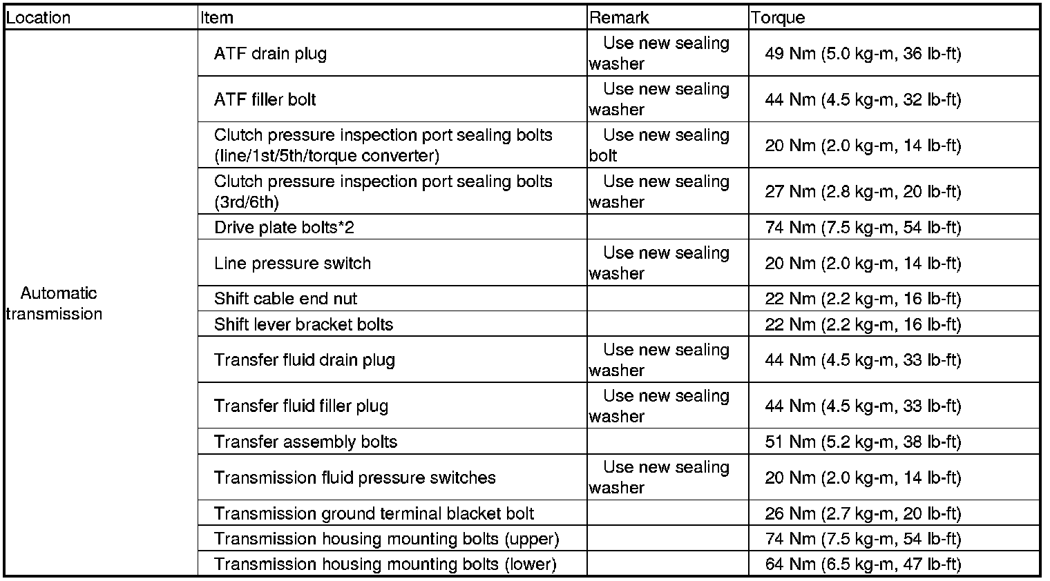 Torque Specifications