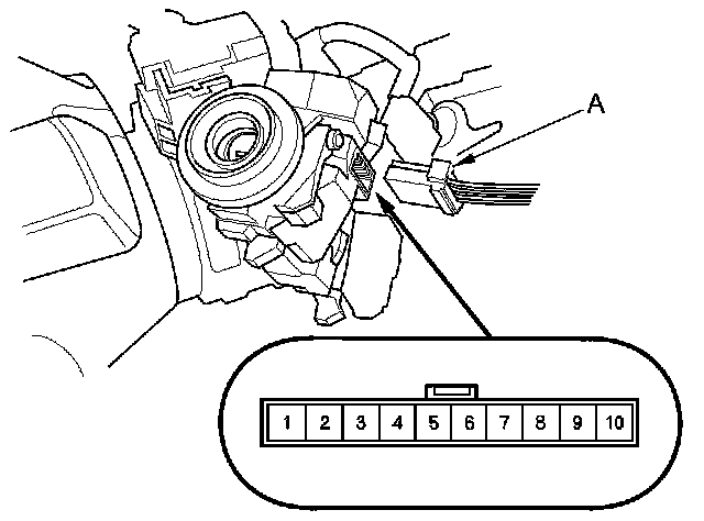 2. Disconnect the 10P connector (A) from the ignition switch control unit.