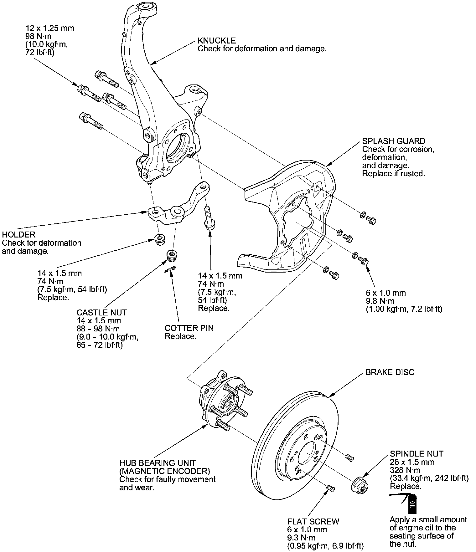 - Use a new spindle nut during reassembly.