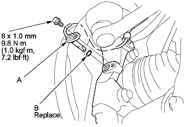6. Remove the holder (A) from the knuckle (B).