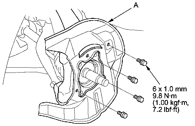8. Remove the hub bearing unit mounting bolts (A).