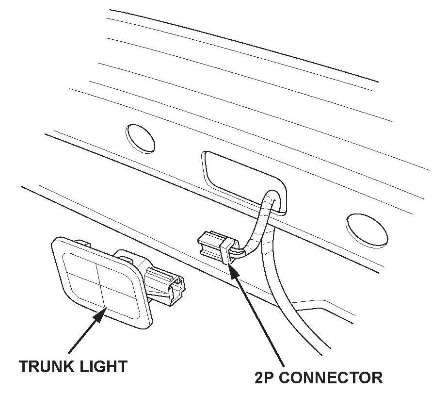 2. Using a plastic trim tool, pry out the trunk light, then disconnect the 2P connector.