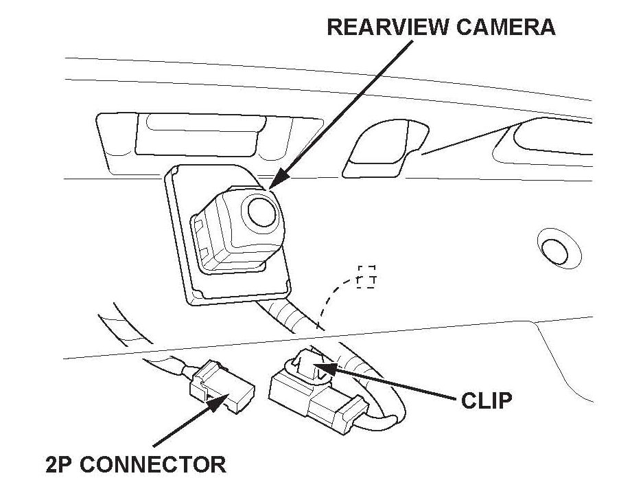 9. Disconnect the 6P connector from the rearview camera, and detach the clip. Then carefully remove the camera by gently lifting up on the bracket and then tilting the bottom out.