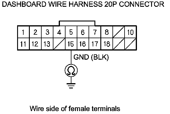 6. Check for continuity between dashboard wire harness 20P connector terminal No. 15 and body ground.