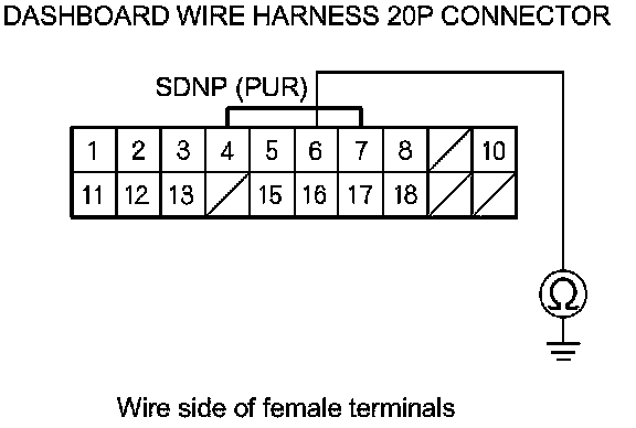 7. Check for continuity between dashboard wire harness 20P connector terminal No. 6 and body ground.